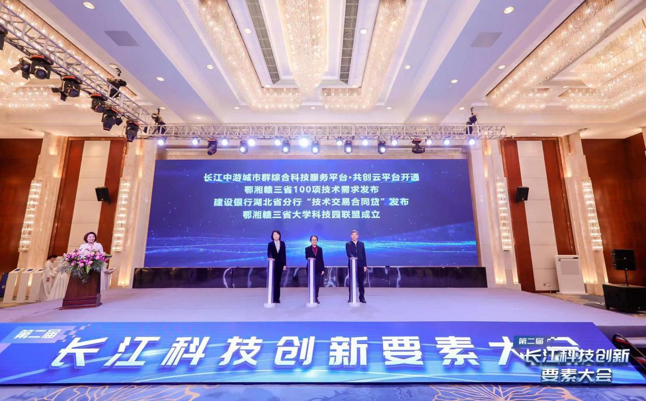 开幕式上,湖北省科学技术厅党组书记、厅长冯艳飞,湖南省科学技术事务中心主任卿涧波,江西省科学技术厅党组成员、副厅长鄢帮有分别致辞,并共同启动了长江中游城市群综合科技服务平台共创云和鄂湘赣三省大学科技园联盟。共创云与三省大学科技园联盟以推进三省产业创新发展为使命,聚焦长江中游城市群重点产业,协同促进产业链创新链深度融合,助力三省高质量发展。