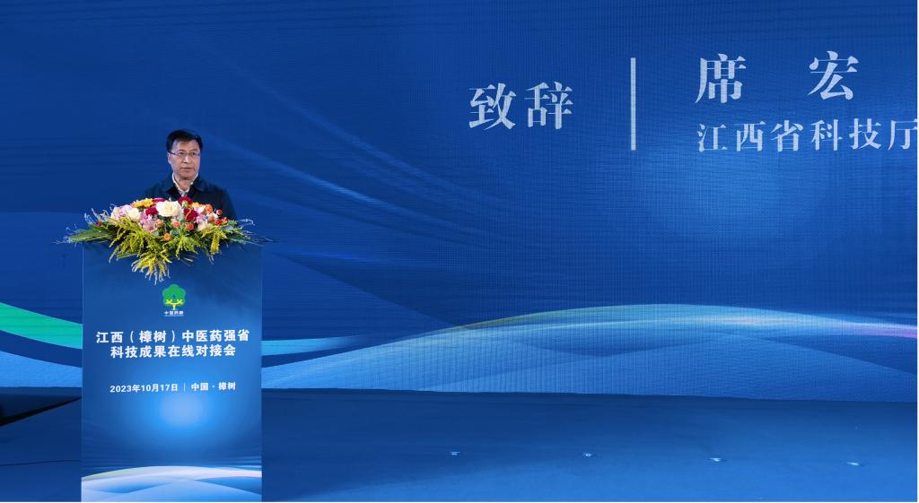 10月17日上午,由江西省科技厅、宜春市人民政府联合主办,江西省科技信息研究所、宜春市科技局、樟树市人民政府承办的江西(樟树)中医药强省科技成果在线对接会在樟树市成功举办。省科技厅党组成员、副厅长席宏同志出席会议并致辞,宜春市人民政府二级巡视员王晓娜发表讲话,樟树市组织部部长金小明介绍会议筹备情况,江西师范大学副校长涂宗财作大会主题演讲。