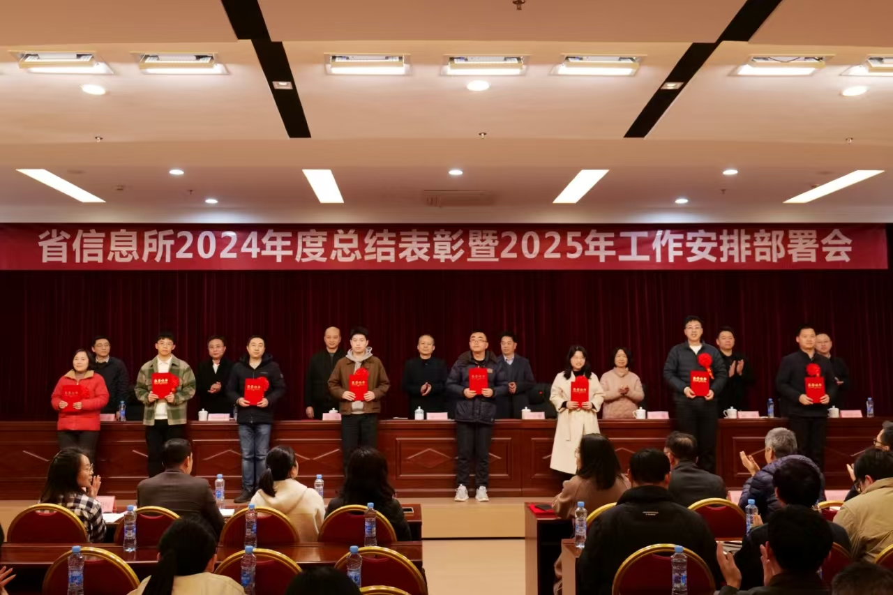 会议宣读了省信息所2024年度优秀科室、优秀个人及单项突出贡献个人名单,出席会议的领导为受表彰集体与个人颁奖并合影留念,优秀科室和优秀个人代表发言。