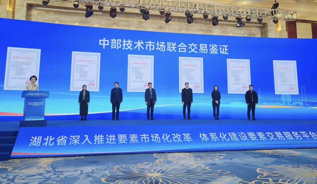 随后,省科技信息研究所作为中部技术交易联盟代表单位,汪仕勇与中部五省联盟代表单位负责人共同点亮屏幕,见证了首批六省互认鉴证证书发布,实现了“一次交易、六省共认”,标志着中部地区技术市场在统一交易标准、促进凭证互信、降低跨域转化成本上迈出实质性步伐。