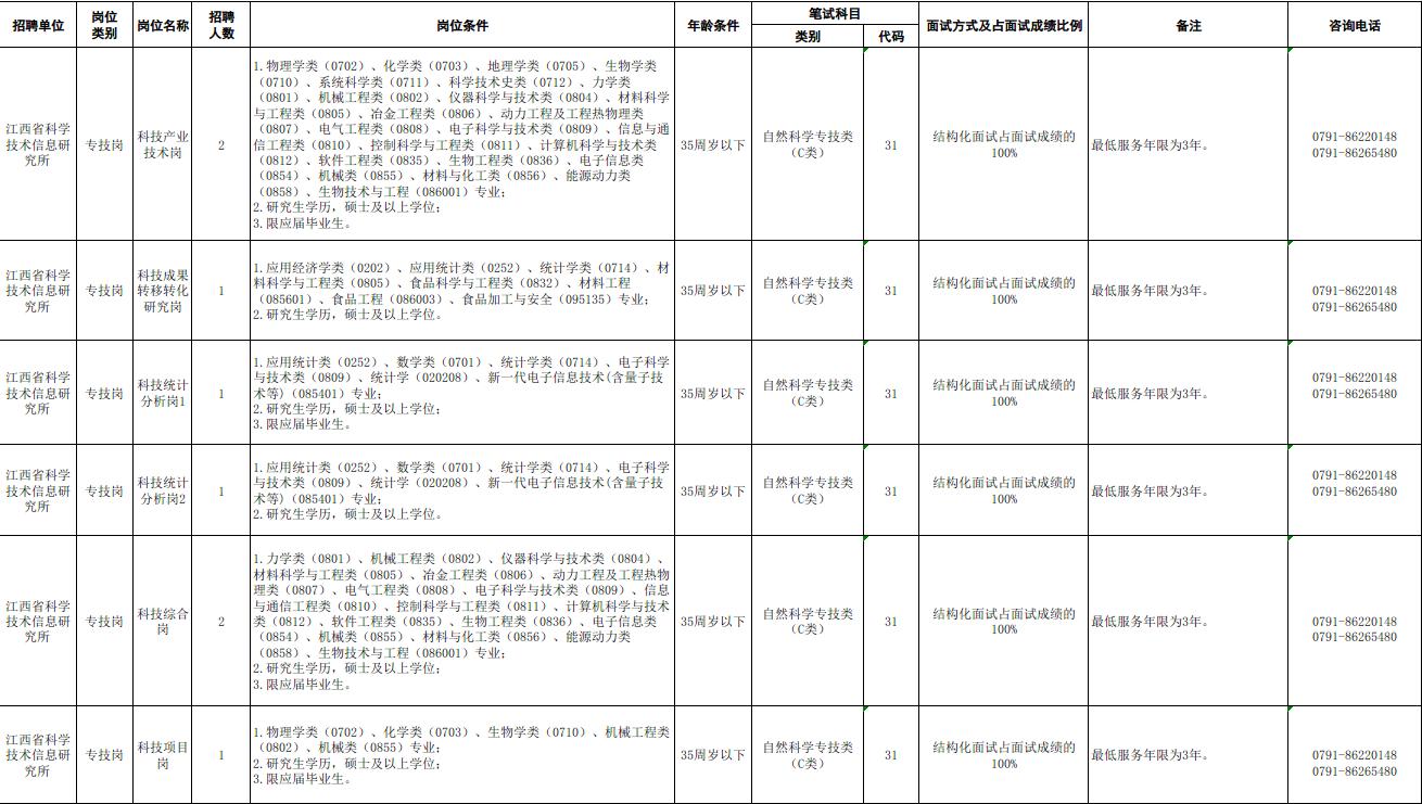 江西省科技信息研究所是江西省科技厅直属的公益一类正处级事业单位,属省财政全额补助拨款的省级独立性科研事业单位,加挂“江西省生产力促进中心”牌子。主要开展科技发展战略研究、产业科技创新研究、科技统计调查与分析、科技文献资源共享服务、科技查新与检索咨询服务、科技成果转移转化服务、科技电子政务管理与科技安全、科技计划项目管理、科技宣传及科普等工作。现面向社会公开招聘专业技术人员8名,有关事项公告如下: