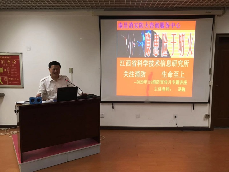 11月17日,根据厅综治办相关工作要求,我所为进一步增强干部职工的消防安全意识,在三楼多功能厅举办了消防安全知识讲座,特邀南昌消安防火中心副主任谌巍授课,李长禄副所长(正处级)等全所职工近60人参加讲座。