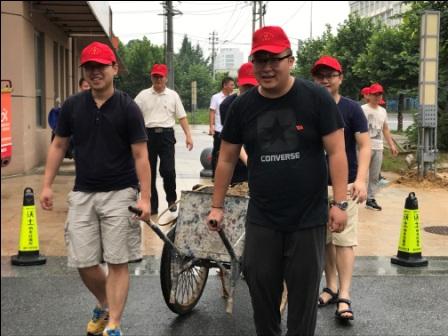 活动当天,全体党员干部们头戴志愿者服务帽、胸前佩戴党员徽章,分成两组,清扫了小区周边的街道、卫生死角,搬运了阻挡道路的沙石,同时拔除了大门内外两侧花坛的杂草。经过打扫,小区周边的街道干净整洁、花坛里的杂草基本清除,小区面貌焕然一新。
