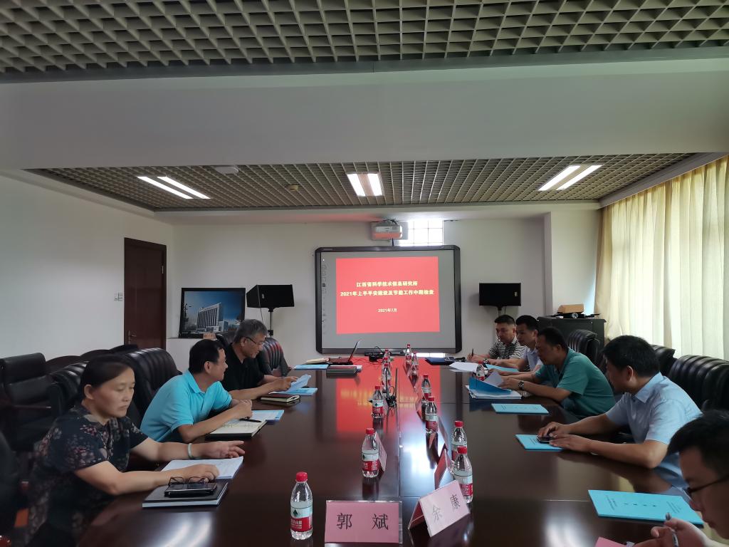 陈火军首先向检查组一行的到来表示感谢,并指出,在厅综治办和节能办的指导下,我所上半年的平安建设及公共机构节能工作顺利开展,并严格按照上级文件要求落实各项工作。随后,综合科科长黄建蓬汇报了2021年上半年工作开展情况。