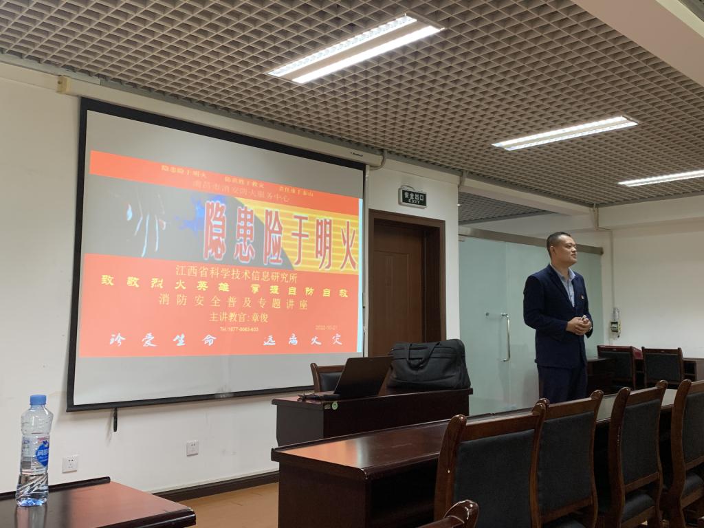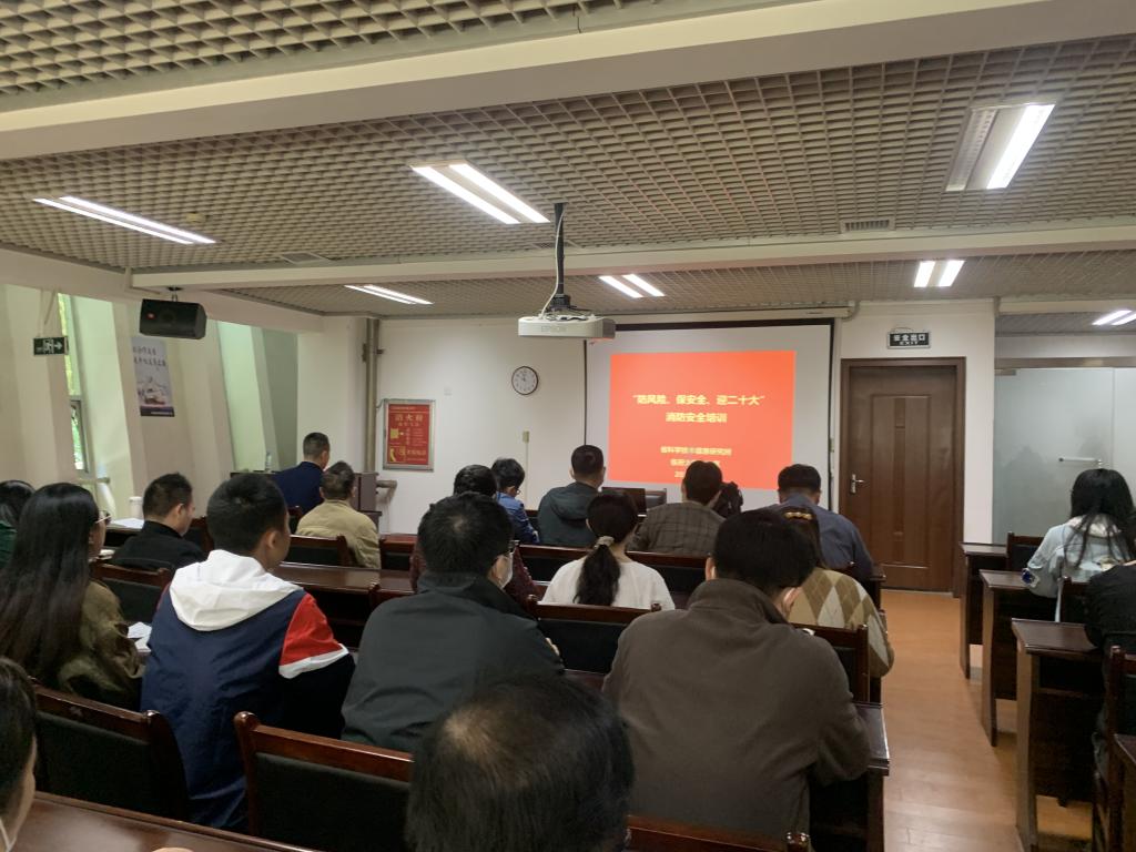 为做好我所消防安全宣传教育工作,切实提高广大职工消防安全意识,10月21日上午,信息所在三楼多功能厅开展了“防风险、保安全、迎二十大”消防安全培训讲座,特邀消安防火服务中心章俊教官进行授课。