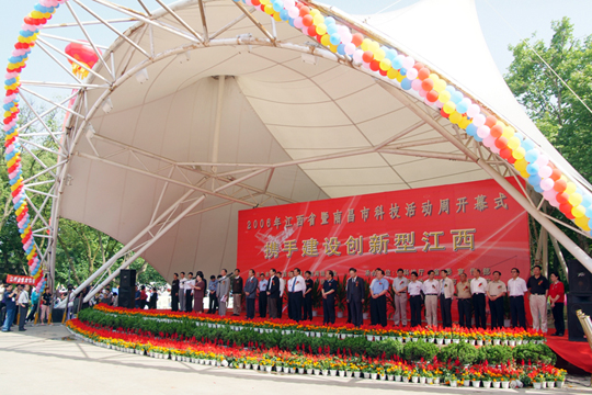 以“携手建设创新型江西”为主题的第六届江西省暨南昌市科技活动周开幕式于5月20日上午在南昌市人民公园举行。省委常委、宣传部长刘上洋出席了仪式并宣布2006年江西省暨南昌市科技活动周开幕。省政府副省长胡振鹏,中国工程院院士、华中科技大学能源科学与工程学院院长张勇传,市委常委、宣传部长、农工部长蔡社宝,市政府副市长罗慧芬,市政协副主席王水苟以及省市有关部门负责同志,省市大专院校和中小学校师生,有关单位科技工作者近千余人参加了开幕仪式。省科技厅党组书记李国强主持了开幕仪式。