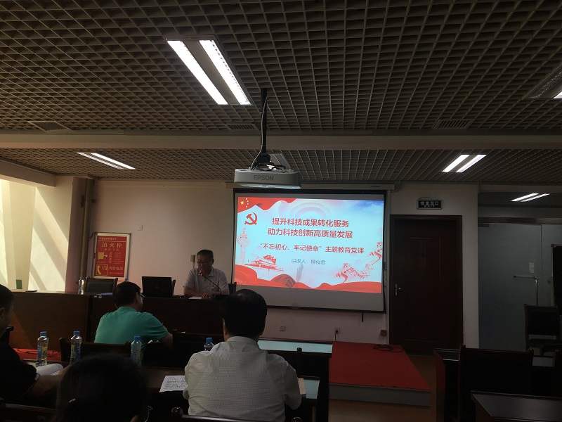 按照所“不忘初心、牢记使命”主题教育活动实施方案统一安排,8月2日下午,在所三楼会议室,所党委书记柳俊君同志作以“提升科技成果转化服务、助力科技创新高质量发展”为题的党课。党课由所长陈火军同志主持,副所长李长禄、副所长黄虹、高燕,全体党员(含预备党员)、入党积极分子共计40余人听取了党课。