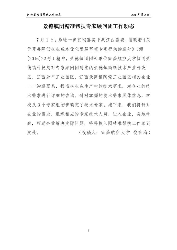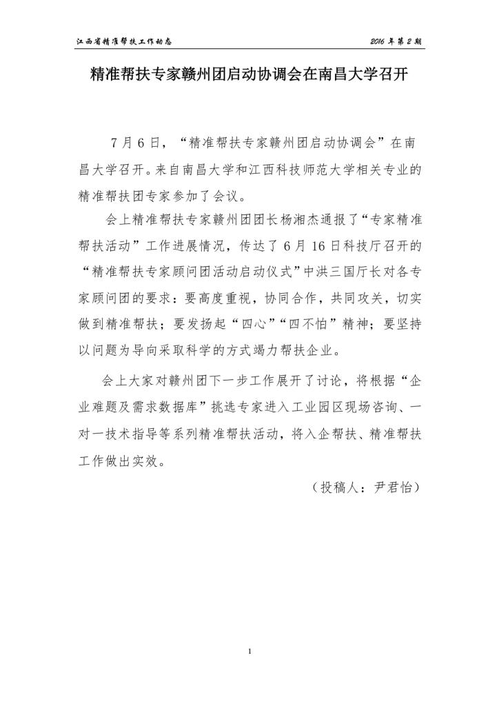 江西省精准帮扶专家顾问团工作动态2016年第2期