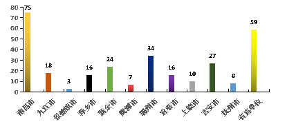 2025年7—8月,全省科技成果登记数量共计297项,其中,应用技术类科技成果274项、基础理论类科技成果22项及软科学类科技成果1项。按设区市登记情况统计为:南昌市75项、九江市18项、景德镇市3项、萍乡市16项、新余市24项、鹰潭市7项、赣州市34项、宜春市16项、上饶市10项、吉安市27项、抚州市8项;省直单位登记59项(见图1)。