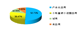 在274项应用技术成果中,产业化应用成果139项,占比50.73%;小批量或小范围应用成果78项,占比28.47%;试用成果30项,占比10.95%;未应用成果27项,占比9.85%(见图2)。